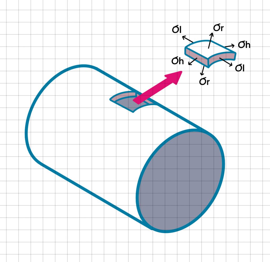 The most commonly encountered application for cylindrical stresses are with thin walled pressurised components. A thin walled pressurised component is defined by: