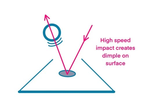 Shot peening helps to alleviate these micro cracks by inducing compressional stresses into the material surface to balance out the forces. As the shot media impacts the surface of the material, the tiny indentations cold work and plastically deform the material much like a blacksmith with a tiny hammer giving it millions of taps all over.