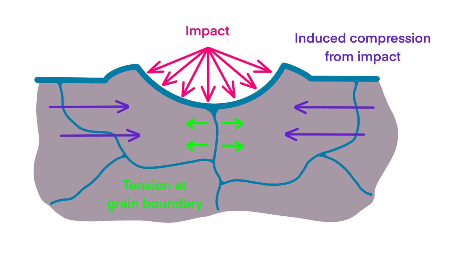 When metals are forged or formed, as the material cools and contracts, residual tensile stresses begin to grow at the grain boundary. As these boundaries begin to pull apart micro cracks can form on the material’s surface.