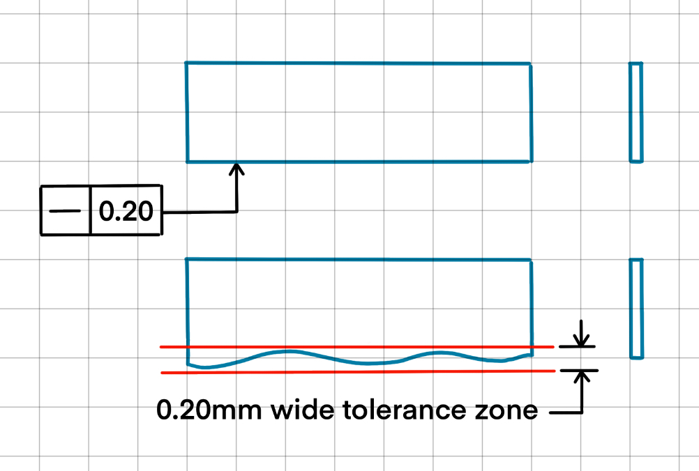 Straightness can be defined in two ways; a 2D tolerance zone bounded by two parallel lines, typically applied to an edge or surface, or a 3D tolerance zone bounded by a cylinder, when applied to an axis.