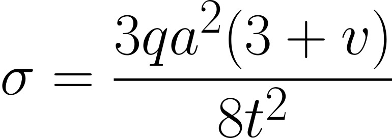 q=load per unit area, a=radius of plate, v=Poisson’s Ratio, t=plate thickness.