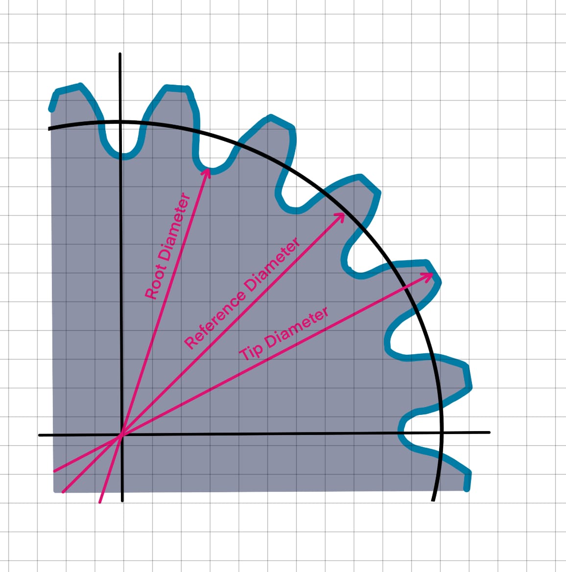 - Root (or dedendum) circle: The minor diameter of the tooth.